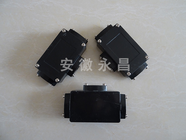 防爆三通接線盒(俗稱T型接線盒)。它主要應用于防爆區域電熱帶與電熱帶的連接,以增加電熱帶的長度,或在同一管線上配用不同功率的電熱帶及三叉管等復雜場合,其外殼為PMC塑料制成。