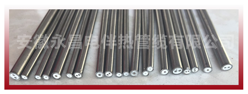 安徽永昌制造的礦物絕緣MI加熱電纜-內(nèi)部是采用當(dāng)根或多 根電合金絲作為發(fā)熱源、高純度、高溫、電容結(jié)晶氧化鎂粉作導(dǎo)熱絕緣體。外部采用無縫連續(xù)不銹鋼/(銅、銅鎳、合金材料等)作為護(hù)套,使用特殊工藝制造而成,在又強(qiáng)腐蝕作用的場所可加PE護(hù)套或低煙無鹵護(hù)套。