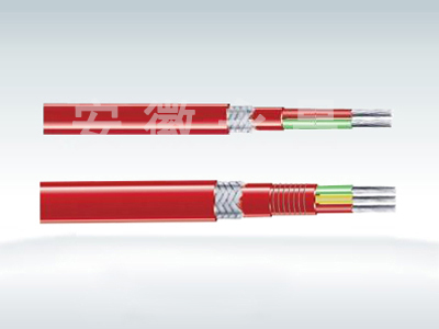 電源母線為二根平行絕緣銅線,在內(nèi)絕緣層上纏繞電熱絲,并將電熱絲每隔一定距離(即“發(fā)熱節(jié)長”)與母線連接,形成連續(xù)并聯(lián)電阻。母線通電后,各并聯(lián)電阻發(fā)熱,因而形成一條連續(xù)的加熱電纜。單相恒功率加熱電纜主要用于各處管道、儀表的防凍、保溫,最高維持溫度150℃,可用于工廠一區(qū)、二區(qū)爆炸性氣體場合。